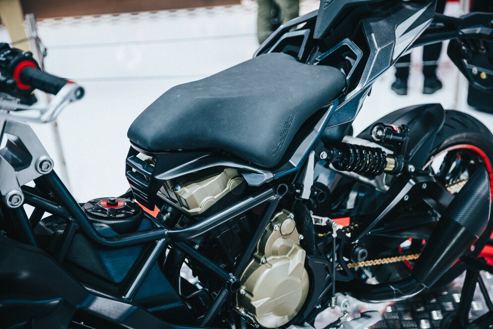 Die 15-Zoll-Felgen des Italjet sind mit Pirelli Diablo-Reifen bestückt, die in den Größen 120/70/R15 vorne und 160/60/R15 hinten kommen. Der Radstand liegt bei 1.542 mm, die Sitzhöhe beträgt 795 mm, und das Trockengewicht bei 180 kg. Dank überraschend großem 16-Liter-Tank sollten längere Ausfahrten kein Problem darstellen.